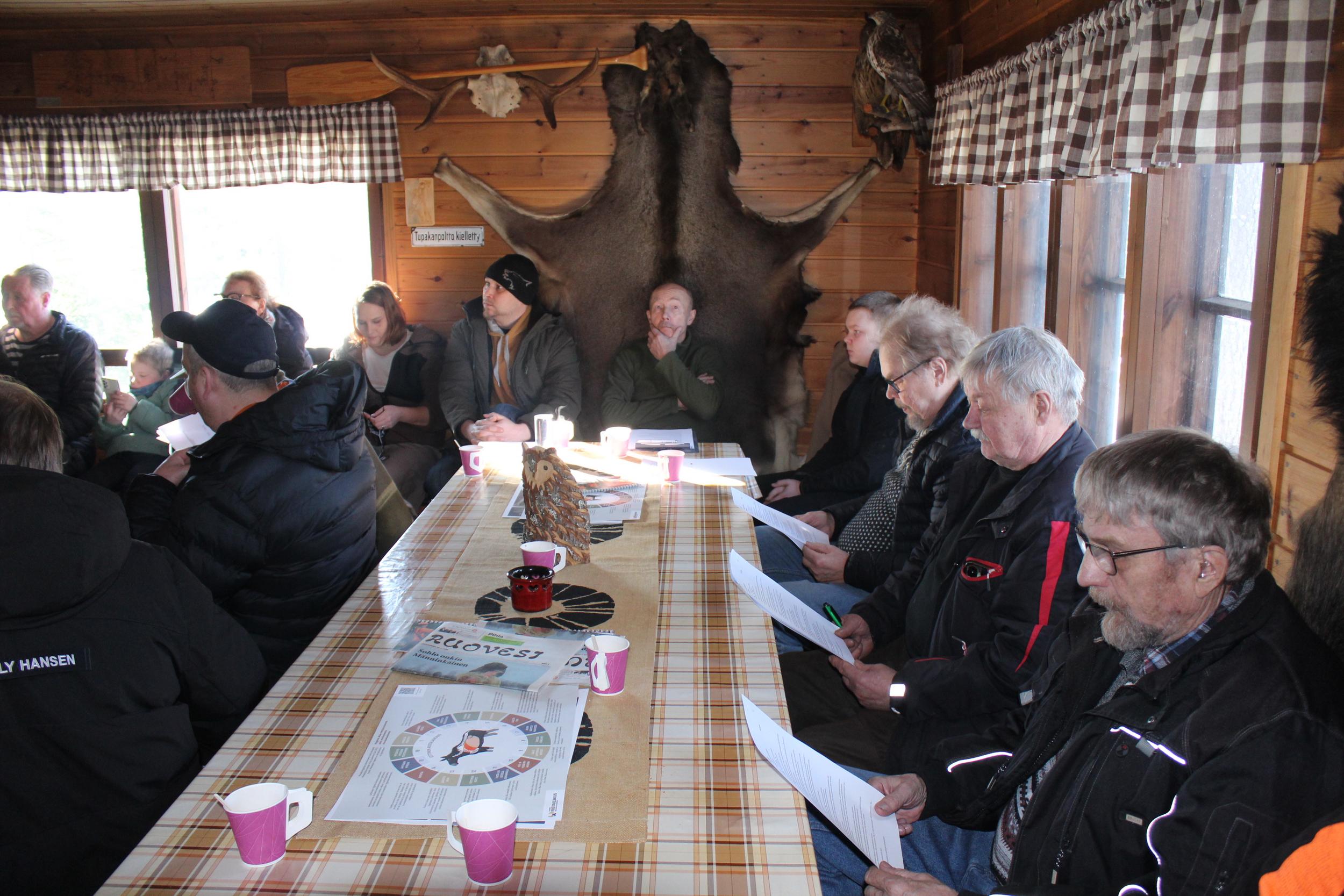 Kokouksen aluksi puheenjohtaja Veijo Pessi selvitti vuoden 2025 tärkeimmät tapahtumat ja varksinkin riistankäsittelytilan rakentamisen ja valmistumisen edistymisen. Kokouksen jälkeen pidettiin myös hirviseurueen kokous.
