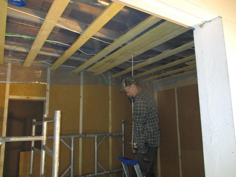 16.1.2024 ikkunoiden sisäpuolen listoitus ja kiskojen koukkujen rakentaminen